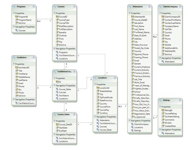 · Each course can have many locations and each location can have many course dates and course facilitators