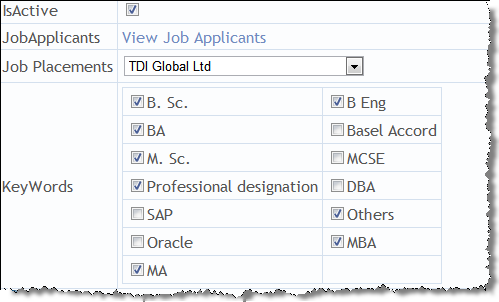 On Job Posting edit page keywords can be attached by selecting it from list of checkboxes: